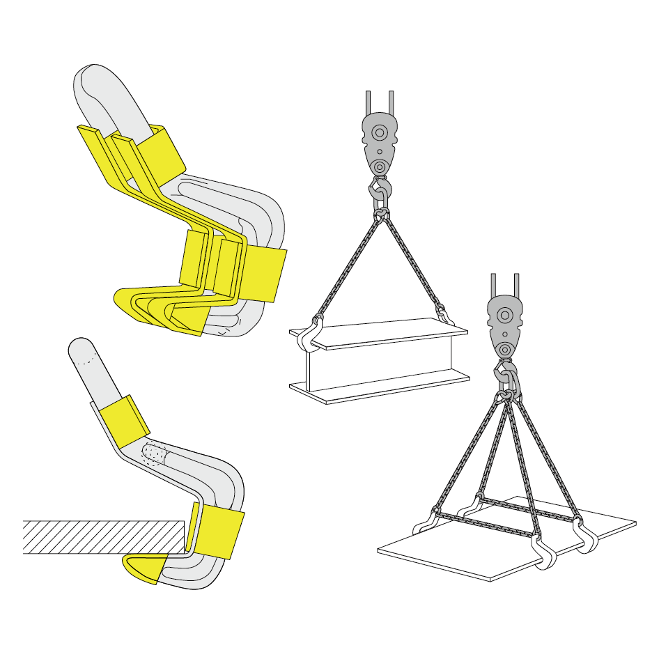 ●Prevents scratches and rust transfer on loads when using lifting equipment (“Hacker” type)