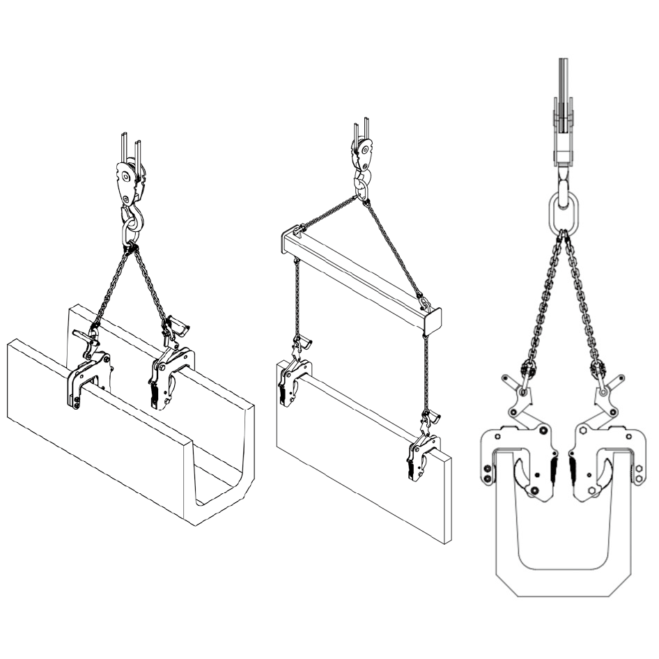 For uprighting and transporting concrete products in confined spaces