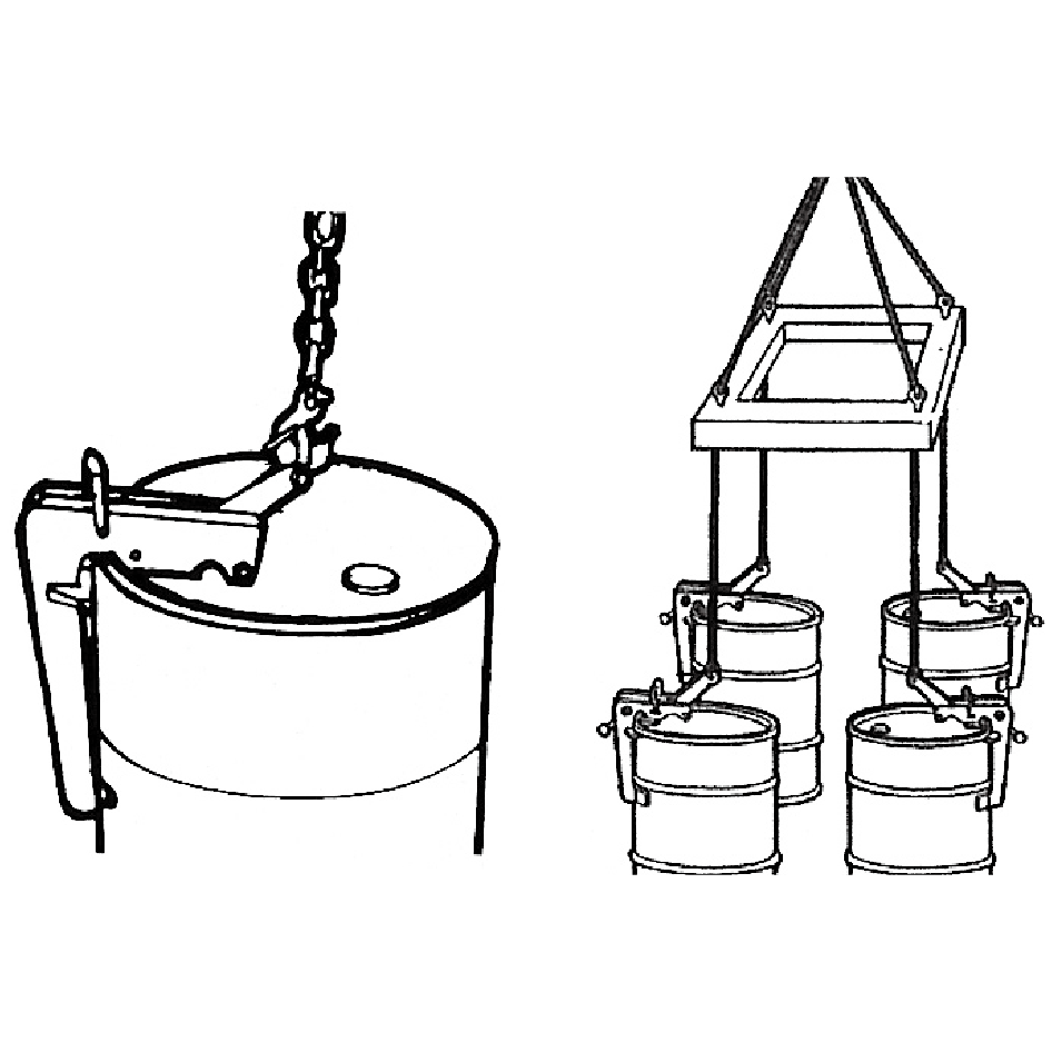 ●Vertical lifting clamp grips the drum edge from one side and lifts it vertically using leverage